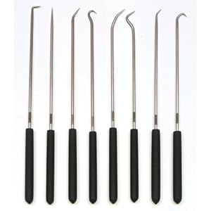 Product Description : Ullman Devices 9-3/4" Long 8 Piece Hook and Pick Set features high carbon polished steel picks that includes 90